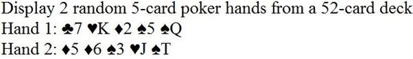 i = H; i < 2*H; i++) {document.write(deck[i] + " "); }